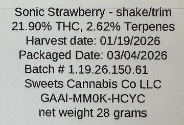 14.2%THC, 1.16% Terpenes